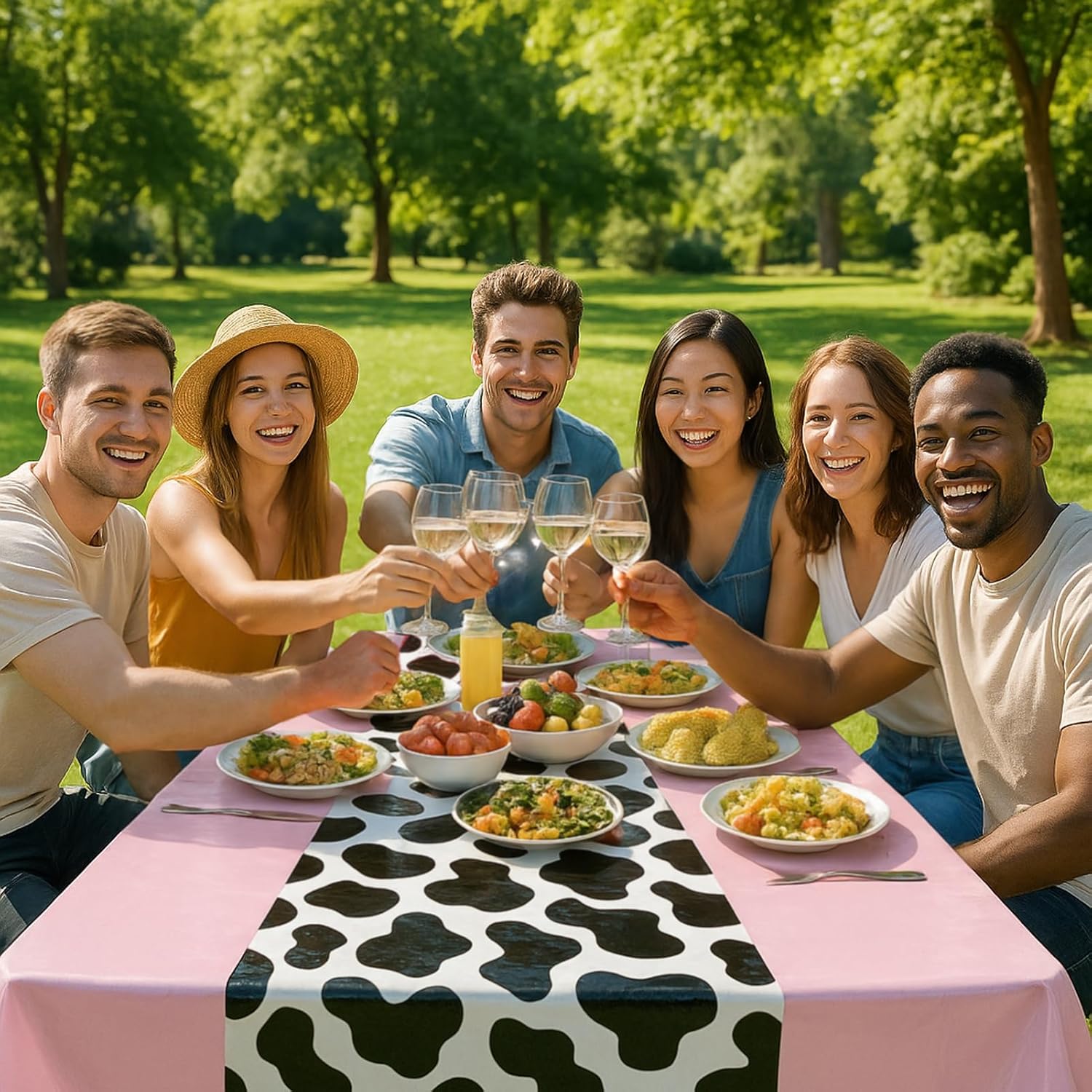 - Premium-Grade Material: Crafted from high-quality plastic, our cow-print tablecloths boast vibrant, fade-resistant colors and durable construction. Lightweight yet tear-resistant, they maintain their cheerful appearance through multiple uses, making them ideal for buffet tables, outdoor picnics, farmhouse dinners, and everyday kitchen use.