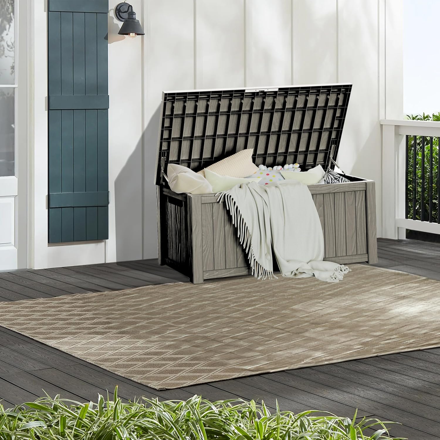150 Gallon Lockable Resin Deck Box, Waterproof & UV-Resistant Outdoor Storage Box for Outdoor Cushion Storage, Garden Tools & Pool Accessories Storage, Gray