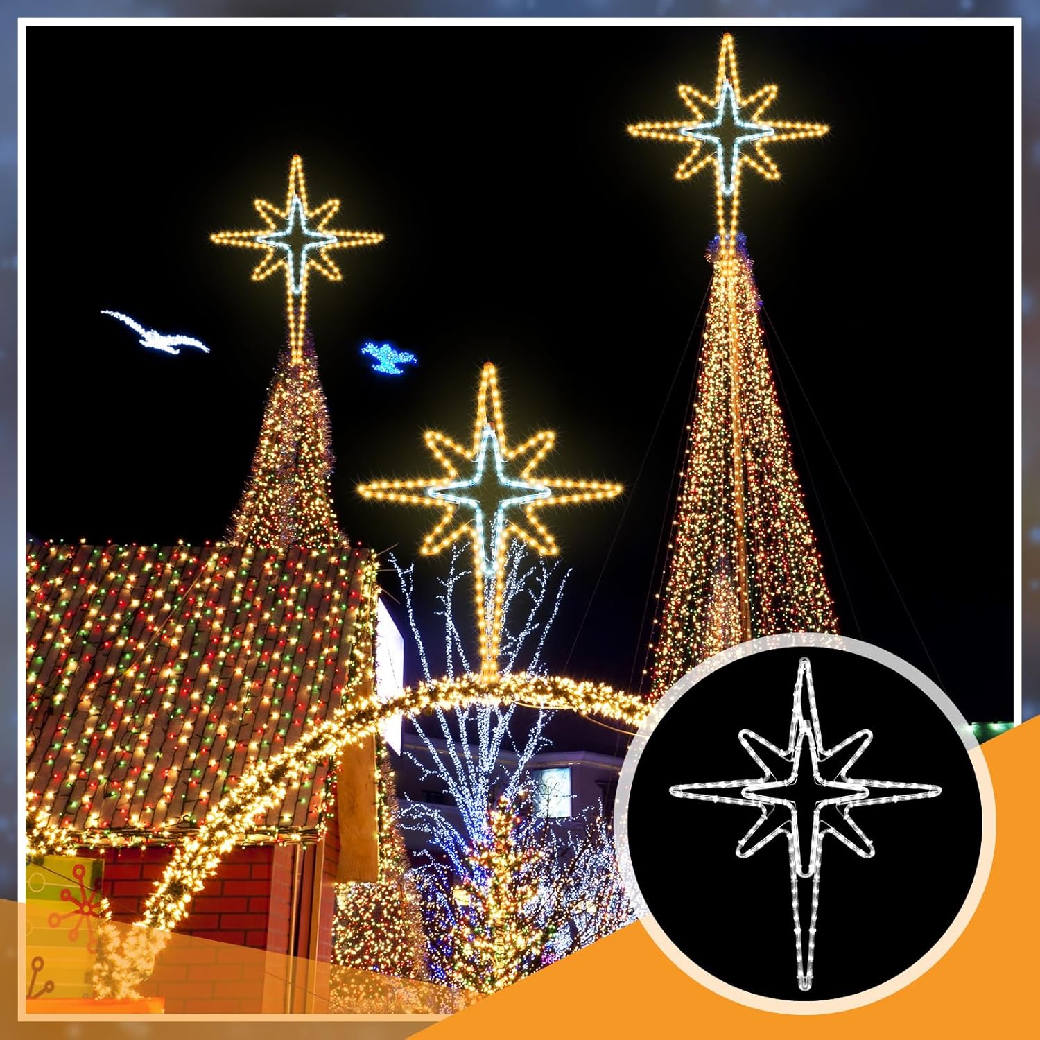 - Reliable Iron Frame: the outside Christmas star adopts a quality iron frame and bright LED beads, a stunning design that adds a touch of elegance to most spaces, bringing a different kind of feeling to the family