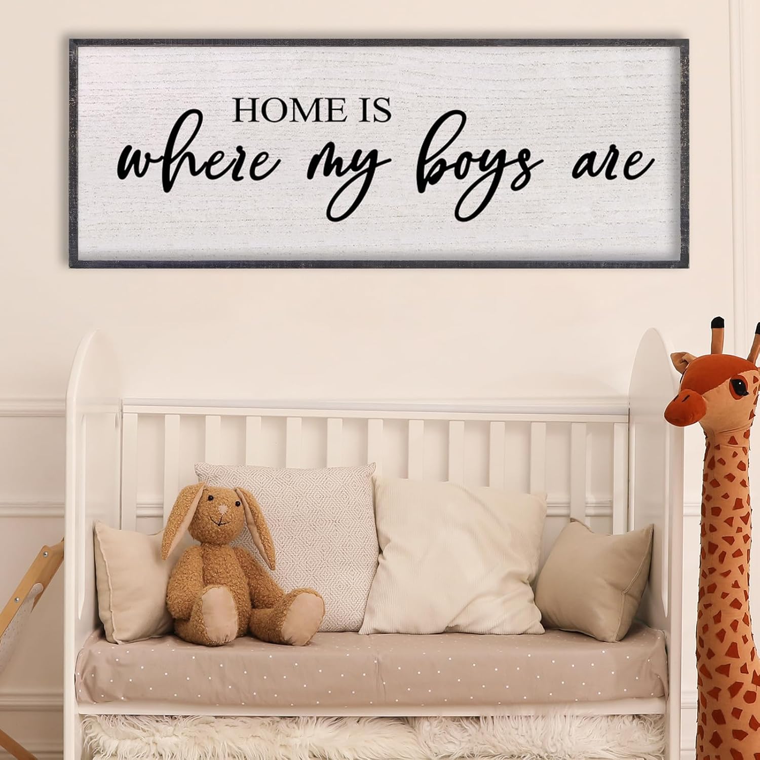 Home Is Where My Boys Are Wall Decor 40"×15" mom and her boys Sign for boys room Playroom Large Wood Framed Wall Hanging Art (Black)