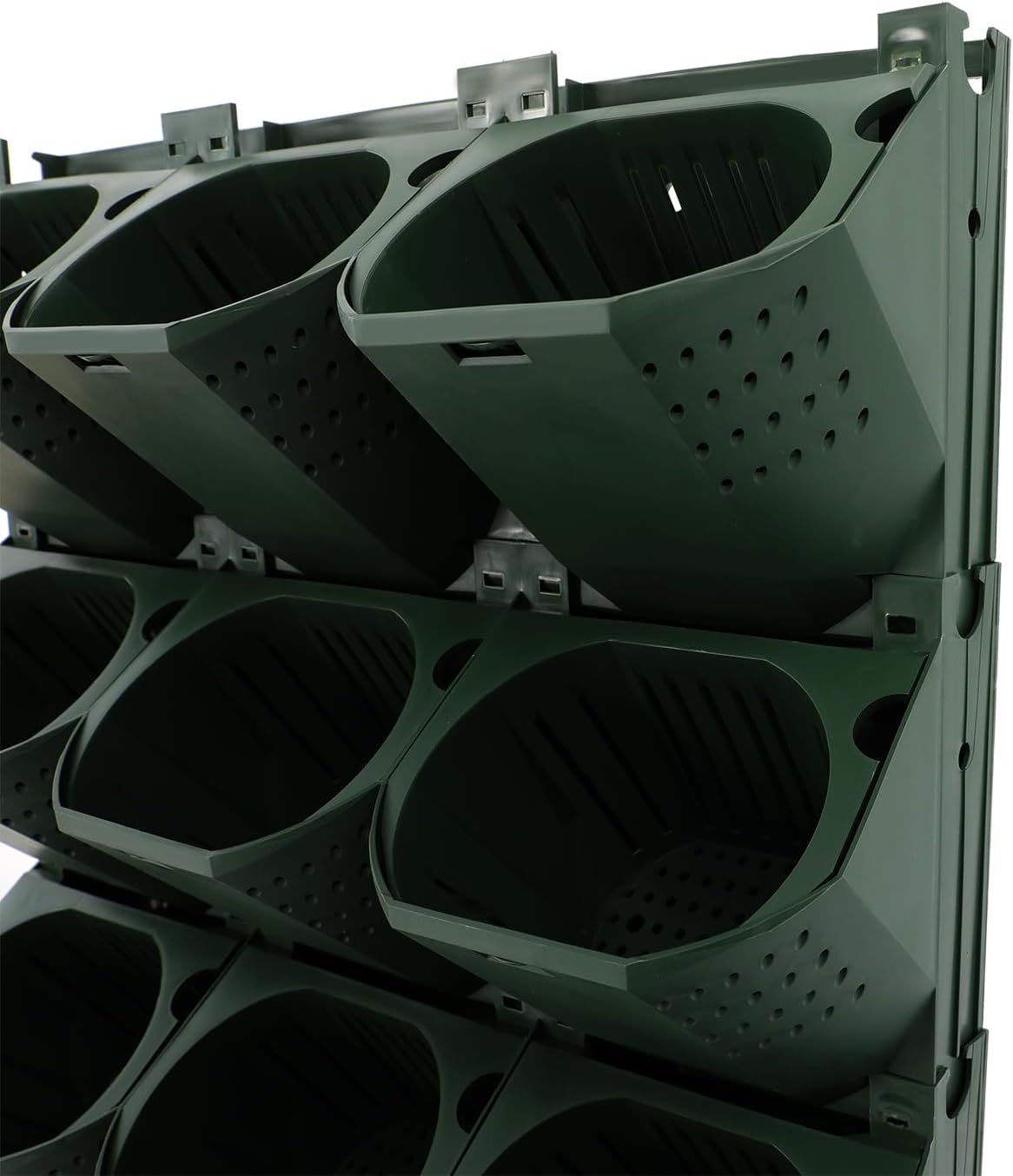 - 【High Security】With a load-bearing capacity of 180.78 pounds, this wall-mounted planter with 36 pots can hold the weight of plants, soil, and water (not included) without deformation or collapse. It features a secure snap-on design that firmly grips the pot.