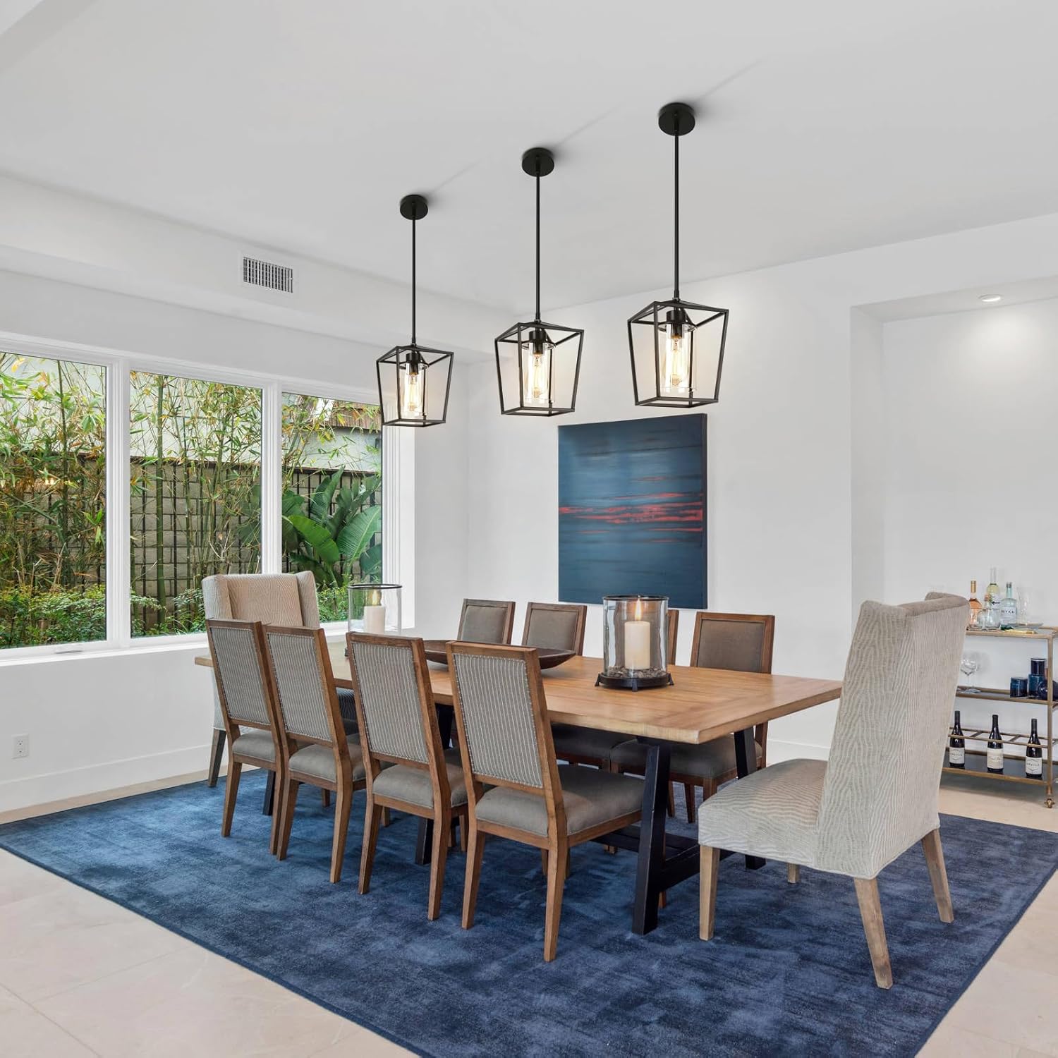 - 【Industrial Pendant Light】This black pendant lights is made of sturdy metal frame and clear glass lampshade, gives off soft light and gets modern statement on a classic lantern shape. This sleek and minimalistic pendant lighting for kitchen island would be a focal point in your kitchen island, dining room, front porch, hallway, foyer, entryway, ect.