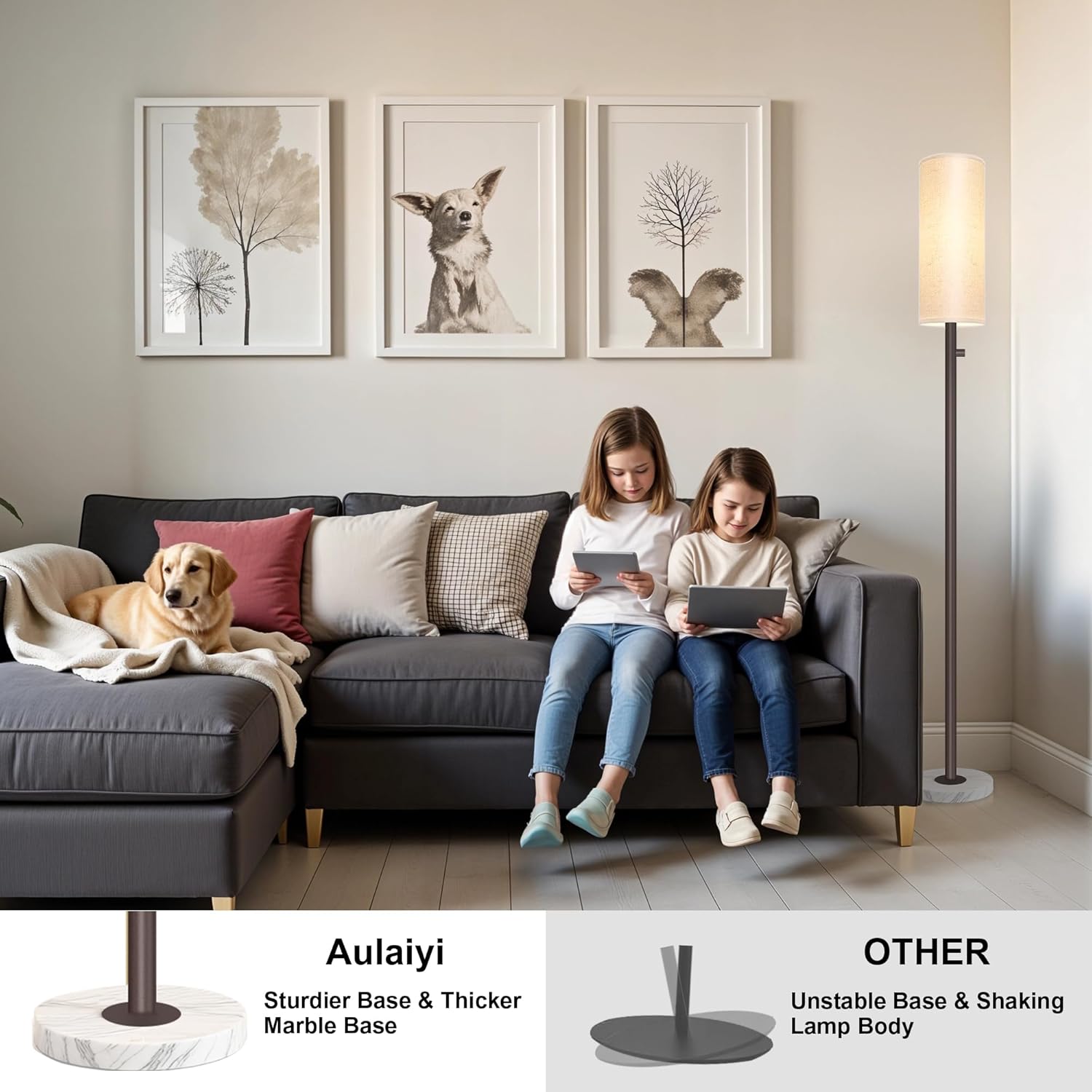 - Stable Marble Base & Space-Saving Design: Our modern tall standing lamp features a high-quality marble base for enhanced stability and added safety. This compact tall lamp fits easily in any corner or beside furniture—ideal for kids' rooms, next to bedside tables, office desks, nightstands, or sofas.