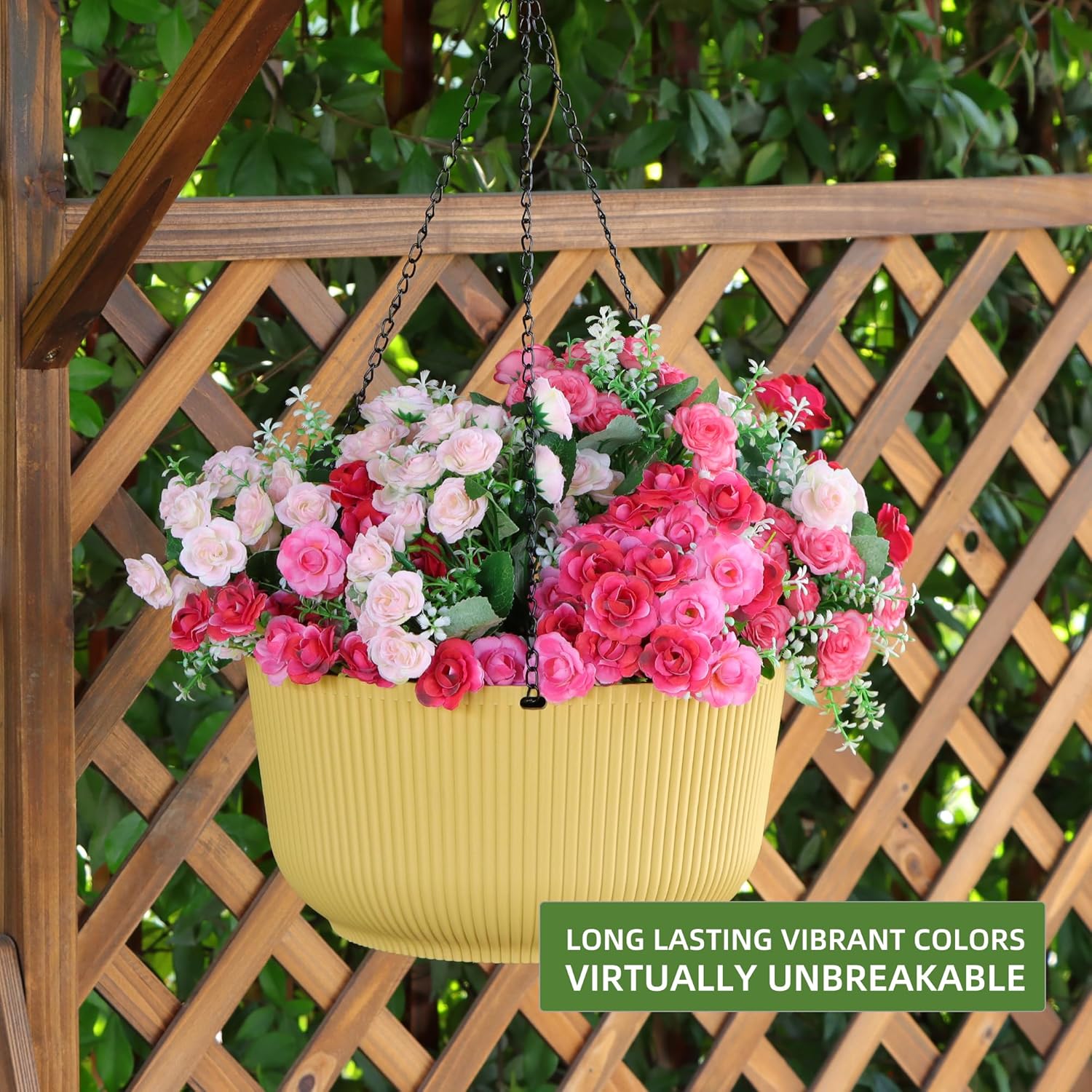 - STRONG HANGING CHAIN & HOLD WHAT YOU WANT - The easy fill pot is designed larger owns strong hanging chain and hook of course. Don't worry about what you plant but place a strong ceiling hanging point