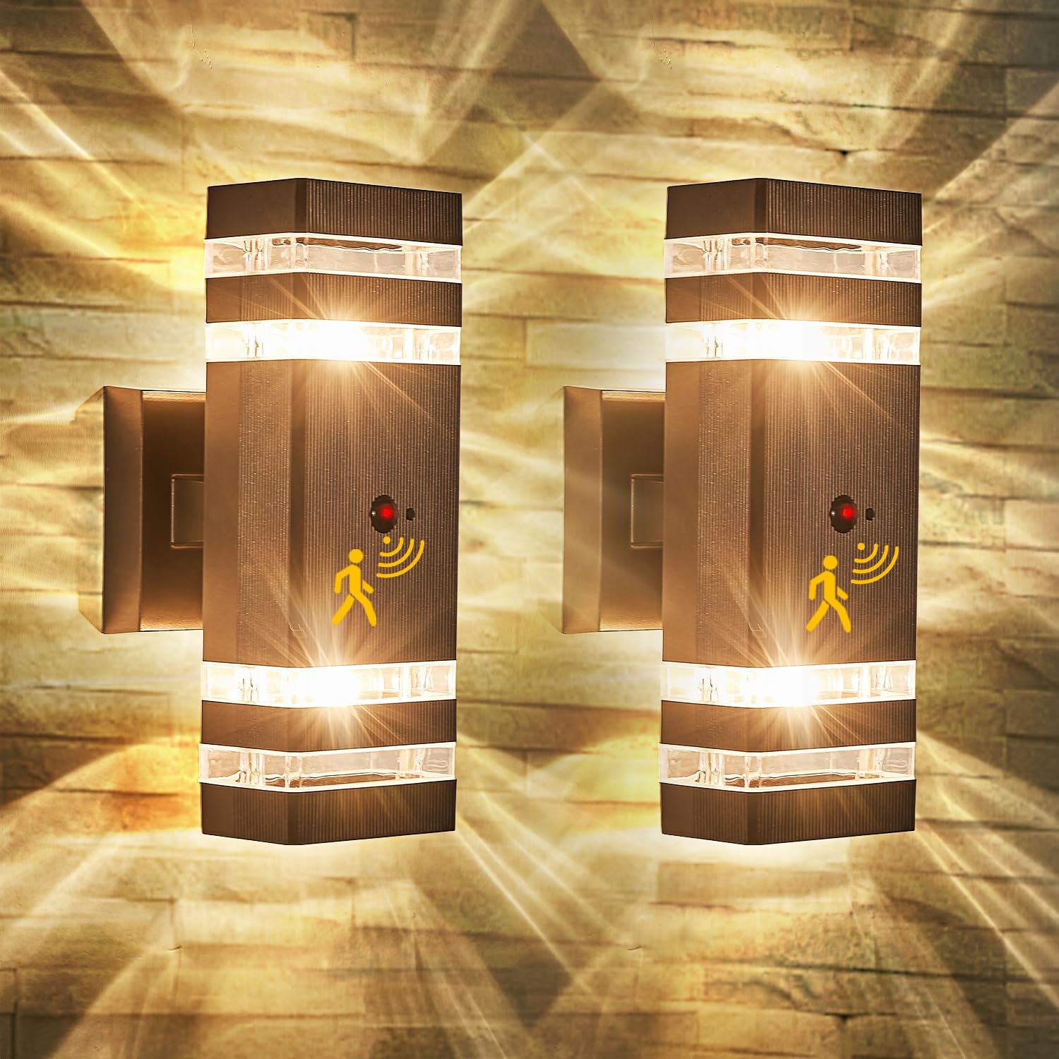 2 Pack Oil Rubbed Bronze Outdoor Wall Lights with 3-Mode Motion Sensor Up Down Porch Lights Modern Dusk Dawn Exterior Sconce Wall Mount Outside Coach Lantern for House(with 4 Dimmable Warm Bulbs)