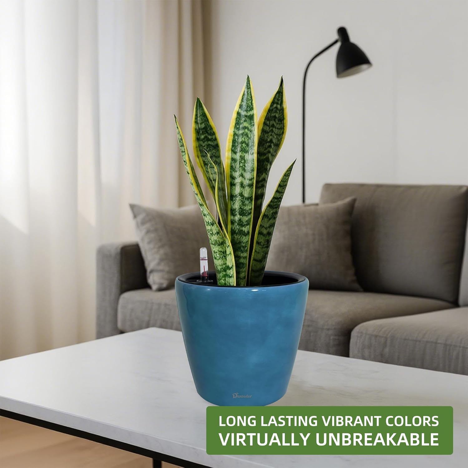 Dexceder 9x8 Inches Self Watering Planter Indoor Outdoor, Inner Pot Design, Thickened Table Flower Plant Pot with Water Level Indicator (Peacock Blue Gradient)
