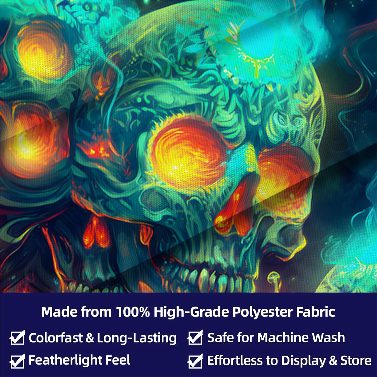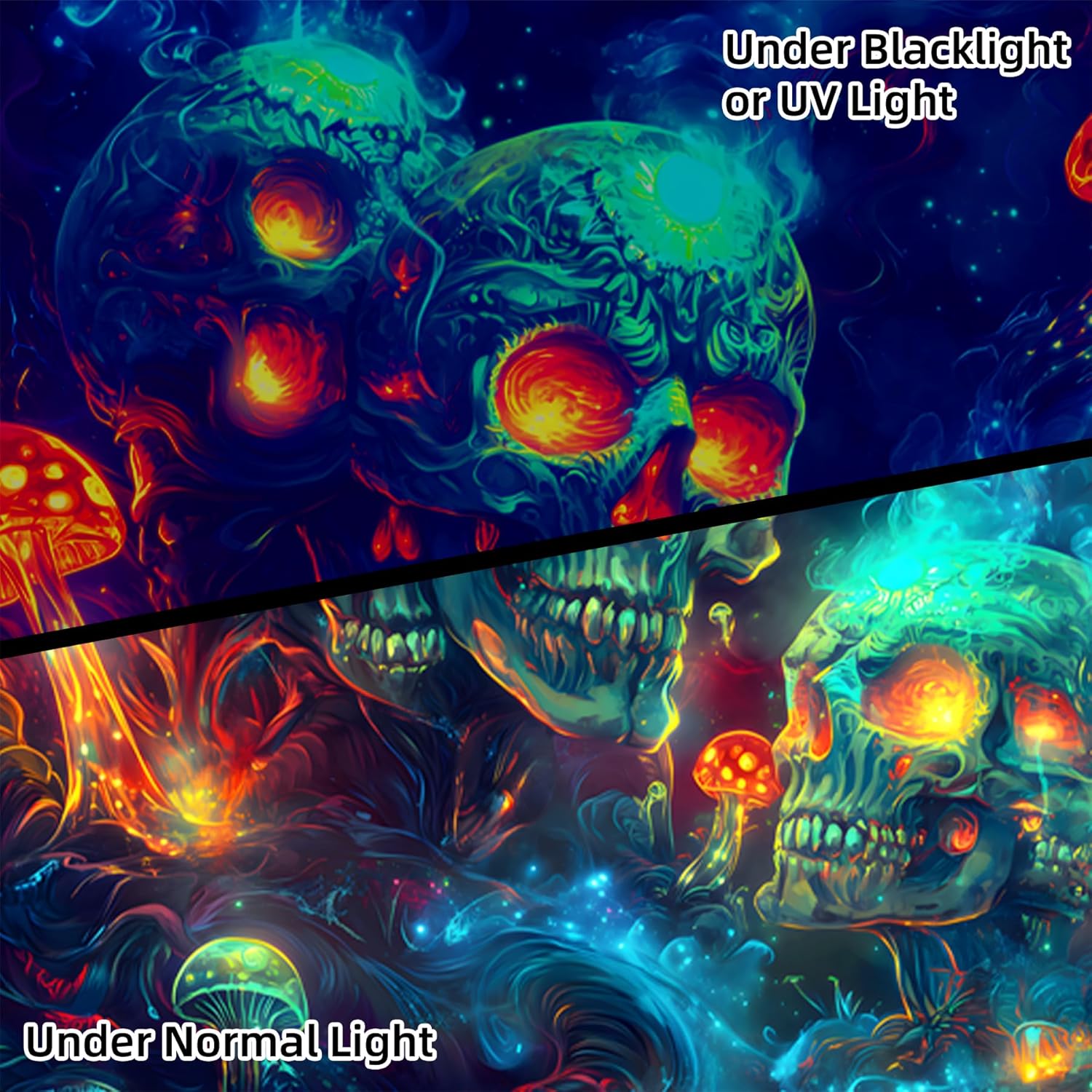 - 【Blacklight Tapestry】Designed for blacklight events, the intricate Halloween art on this blacklight tapestry pops with color in the dark.