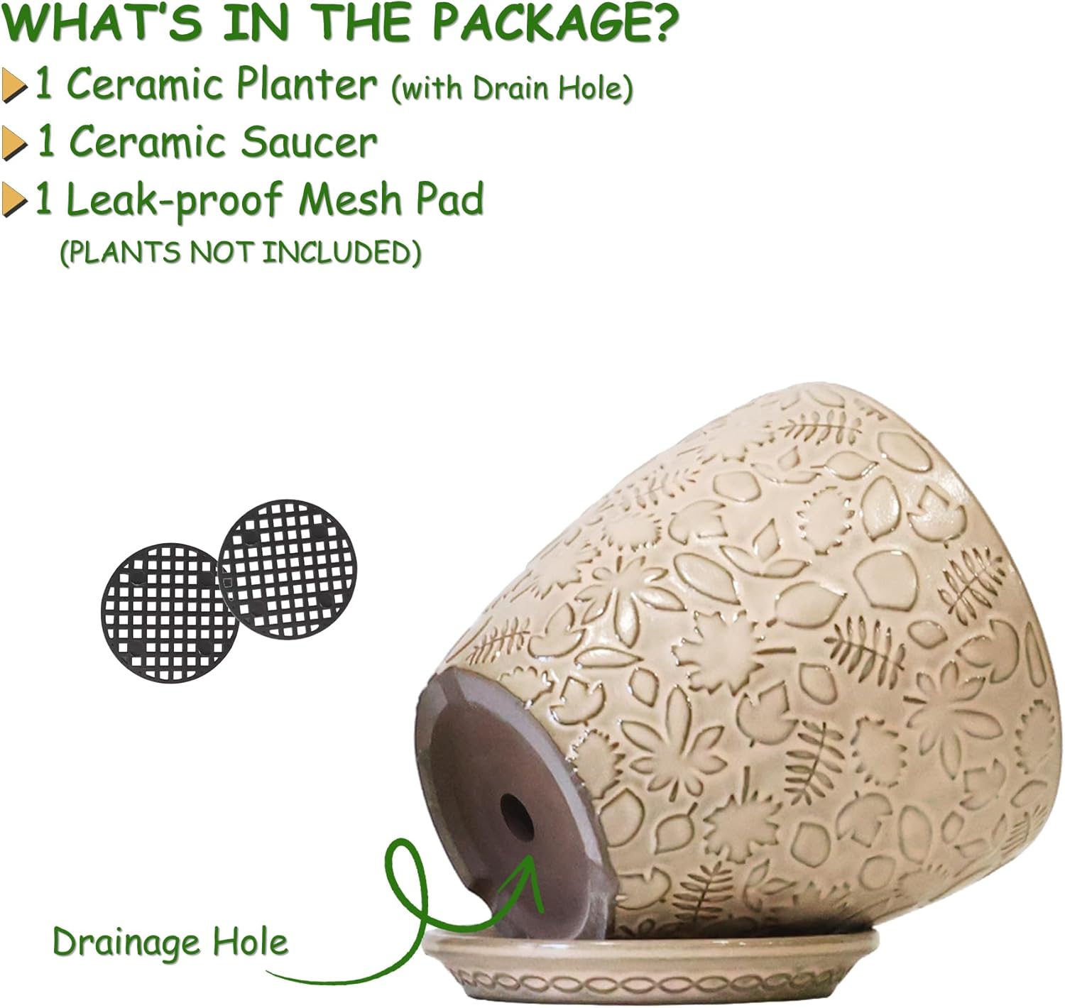 - Thoughtful Gift for Plant Enthusiasts:The Ceramic Plant pots with Drainage Hole and Saucer for plants indoor Designed with charming leaf , flower, and plant motifs, these planters make excellent gifts for plant lovers. Suitable for occasions such as birthdays, anniversaries, housewarmings, Thanksgiving, Christmas, and more.