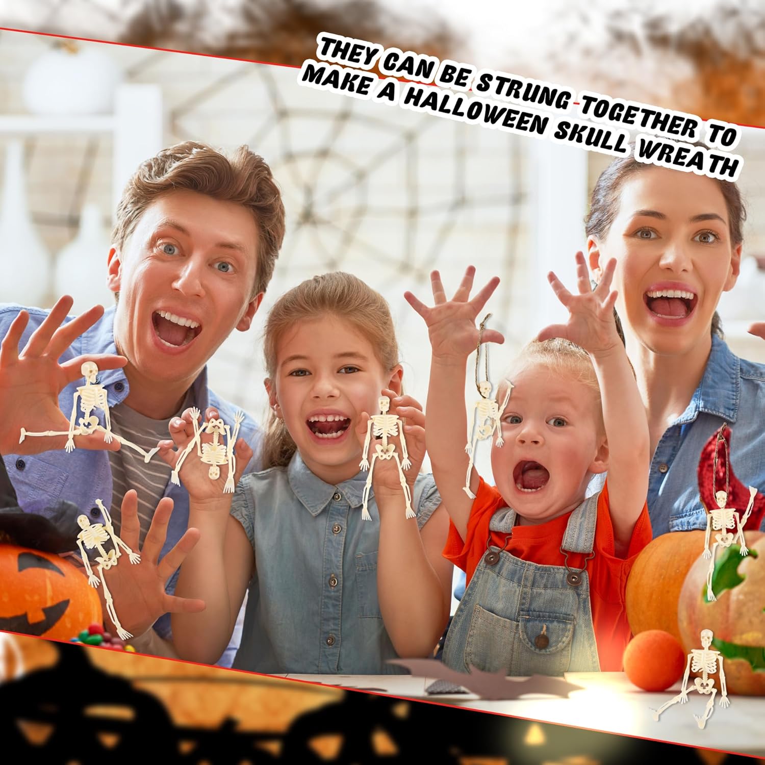 - How to use: You can string the Halloween skeleton figures together with jute rope to make Halloween skeleton wreaths, and you can also hang them with jute rope anywhere you want to decorate, such as Halloween theme parties, haunted houses, cemetery scenes, front porches, door halls, fireplaces, windows, skeleton props theme parties, etc