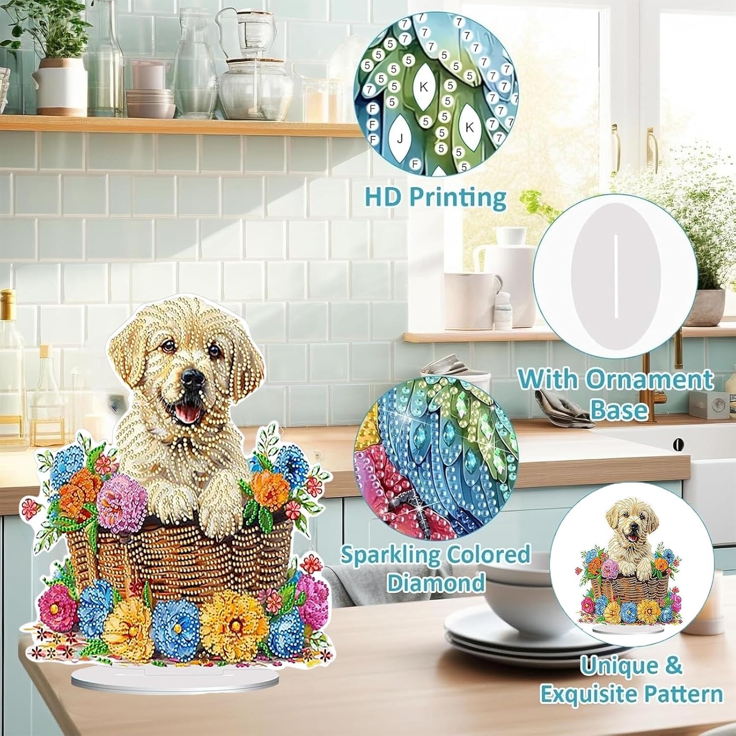 Diamond Painting Kits for Adults Beginners, 5D Full Drill Dog Crystal Art Desktop Ornament, DIY Single Sided Home Office Desk Decor, Creative Craft Gift Set with Tools