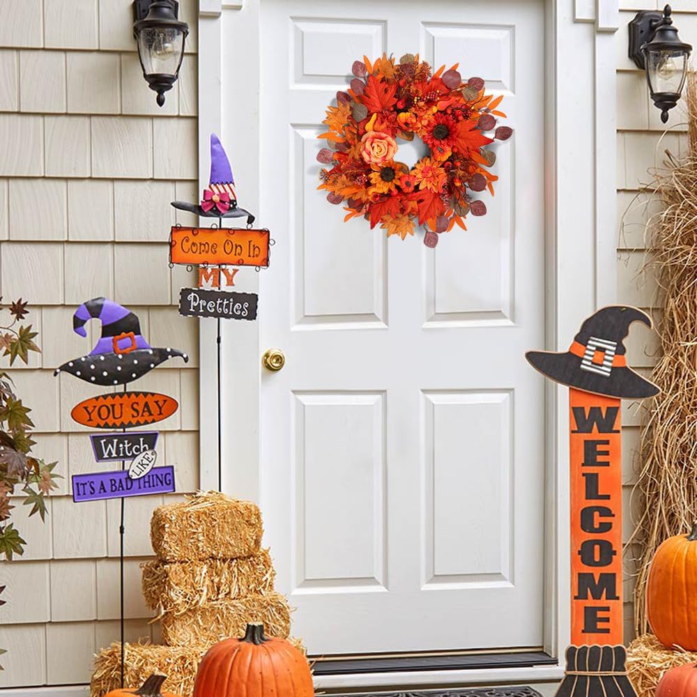 - Large & Flully Design: 24 inch fall wreath for front door handcrafted fuller with industrial hot-glue adhesion—every pumpkin, berry, and maple leaf locked storm-proof beats sparse wreaths for front door clearance
