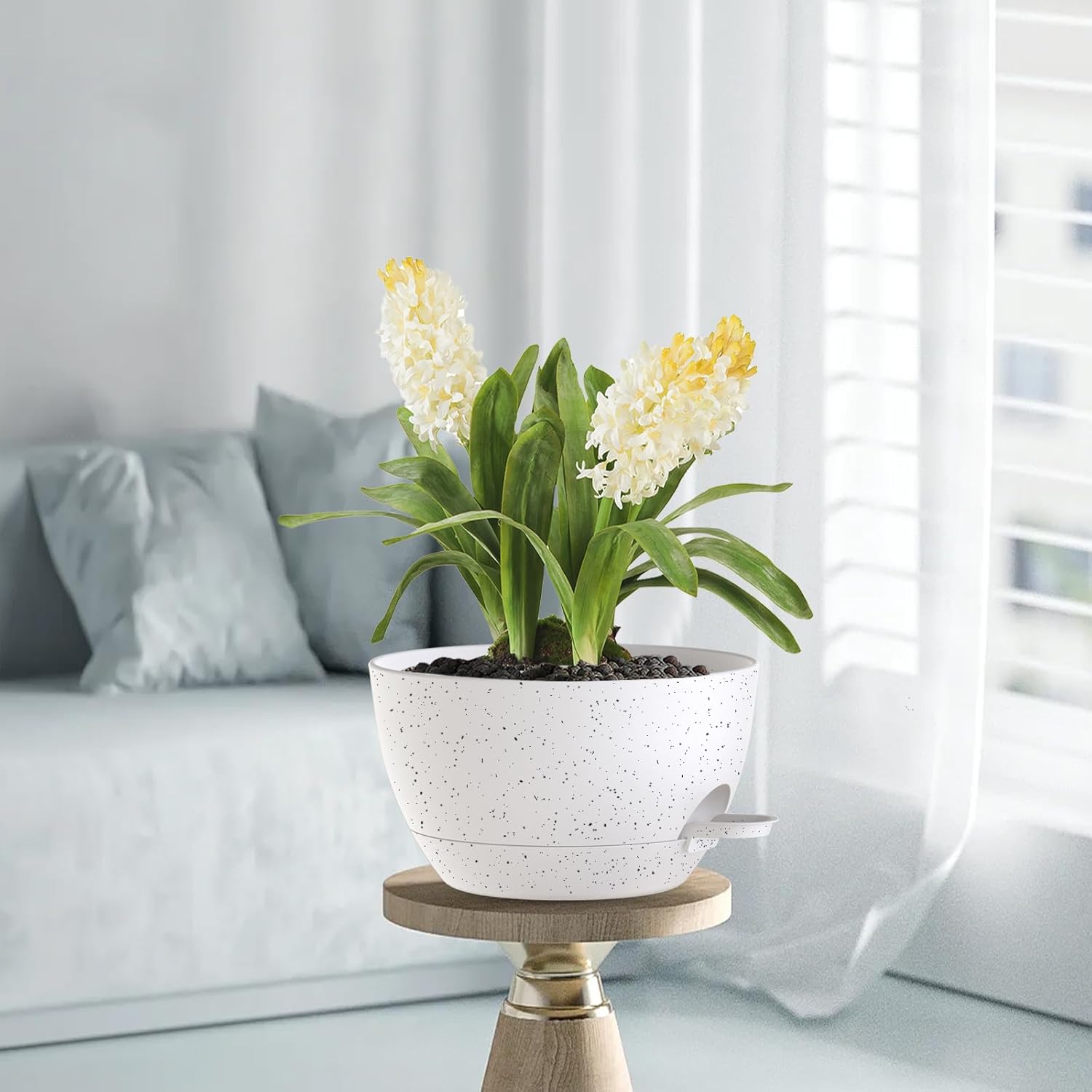 12 Inch Hanging Baskets 2 PC with Chains, Self-Watering Hanging Planters for Indoor Outdoor Plants, Plastic Hanging Flower Pots,Speckled White