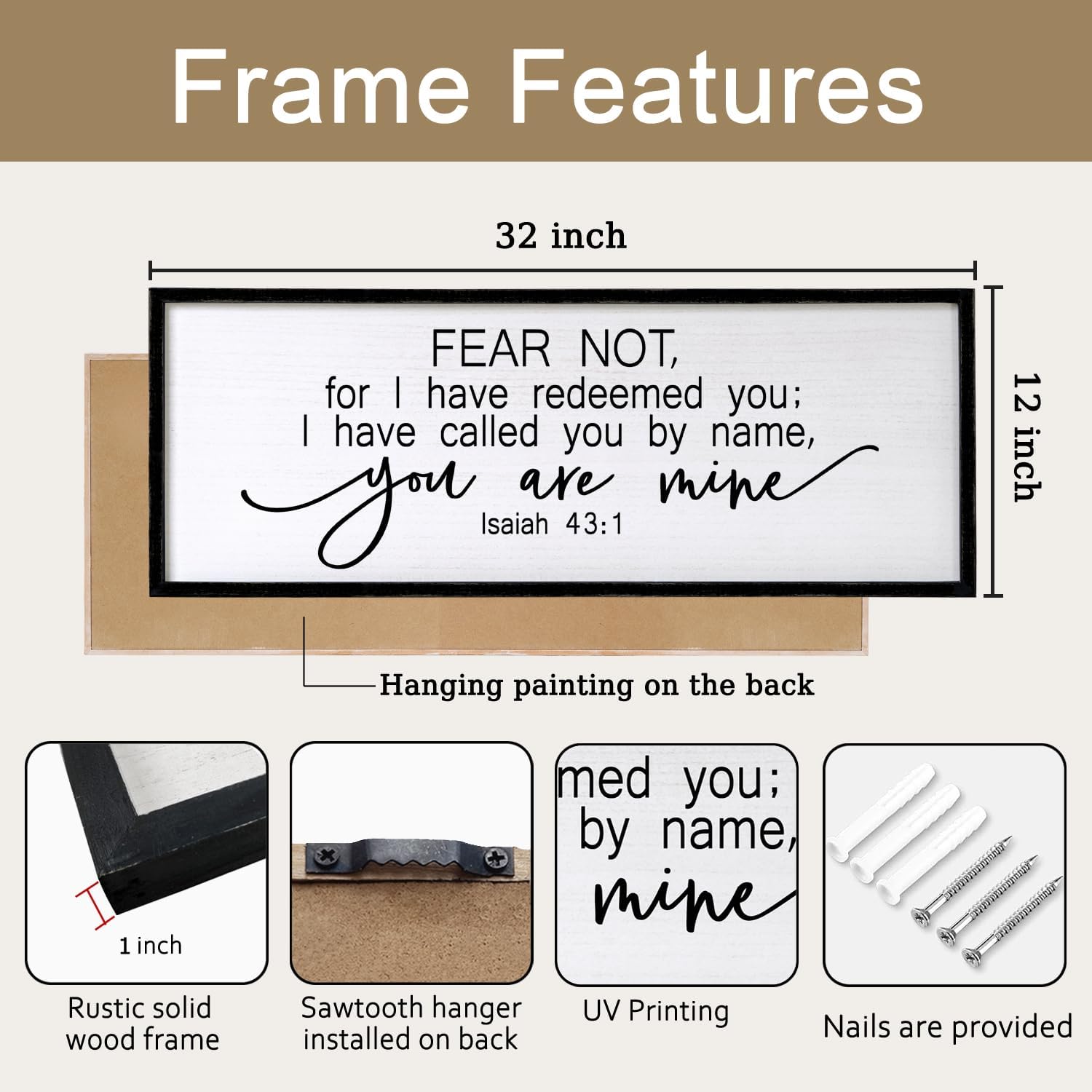 Fear Not for I Have Redeemed You Sign Framed Wall Art, 32''×12'' Rustic Religious Christian Isaiah 43:1 Bible Verse Sign, Horizontal Holy Inspirational Catholic Scripture Decor