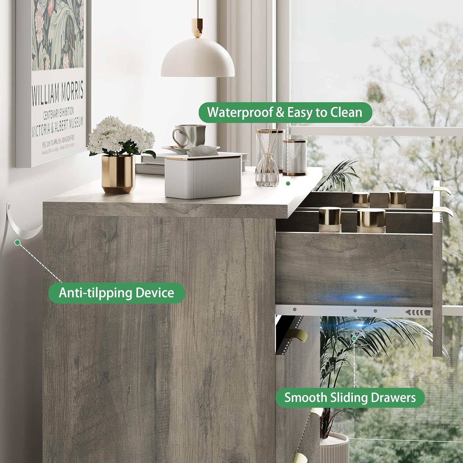 - 【Solid Material & Sturdy Construction】The dressers & chests of drawers are constructed from optimal MDF, P2 engineered wood and coated metal handle which not only has exquisite texture, but also ensure long-term use and scratch resistant. Each drawer holds up to 35 lbs/15 lbs and the thickened tabletop can support up to 150 lbs. For easy cleaning, just wipe with damp cloth and get it air-dried
