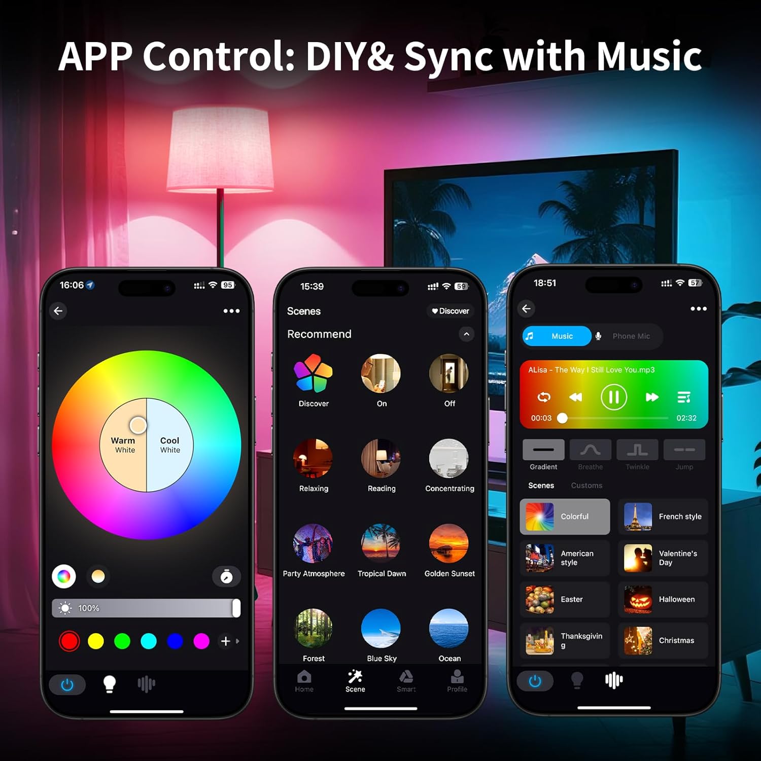 - 【APP Control: DIY& Sync with Music 】To use this RGB floor lamp, start by turning it on with the foot switch. After that, you can control it with either a remote or a smartphone.The floor lamp for bedroom also has a music rhythm feature that changes the colors and brightness to match the beat of the music. It's a fun way to liven up your parties with an awesome music and light experience!