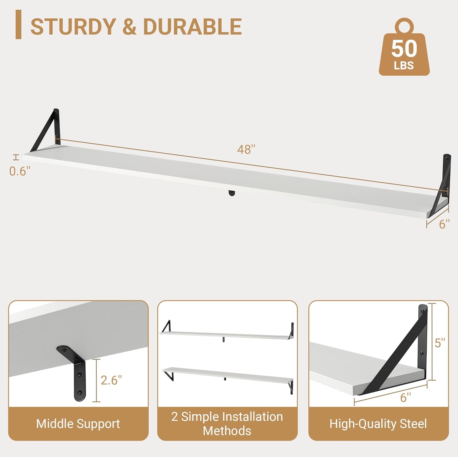 Heimlove 48 Inch Large Wall Bookshelves Set of 3, Wall Mounted Bookshelves,Heavy Duty Wooden Shelves for Living Room,Bedroom,Kitchen,Laundry Room Storage & Decor
