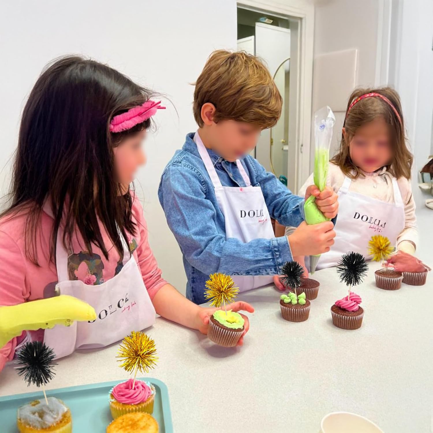 Ephlyn 30Pcs Foil Firework Cupcake Toppers Sparkle Tinsel Cupcake Picks Happy Birthday Cake Decorations Drink Stirrers Cocktail Food Toothpicks for Baby Shower Graduation Party Supplies Black Gold