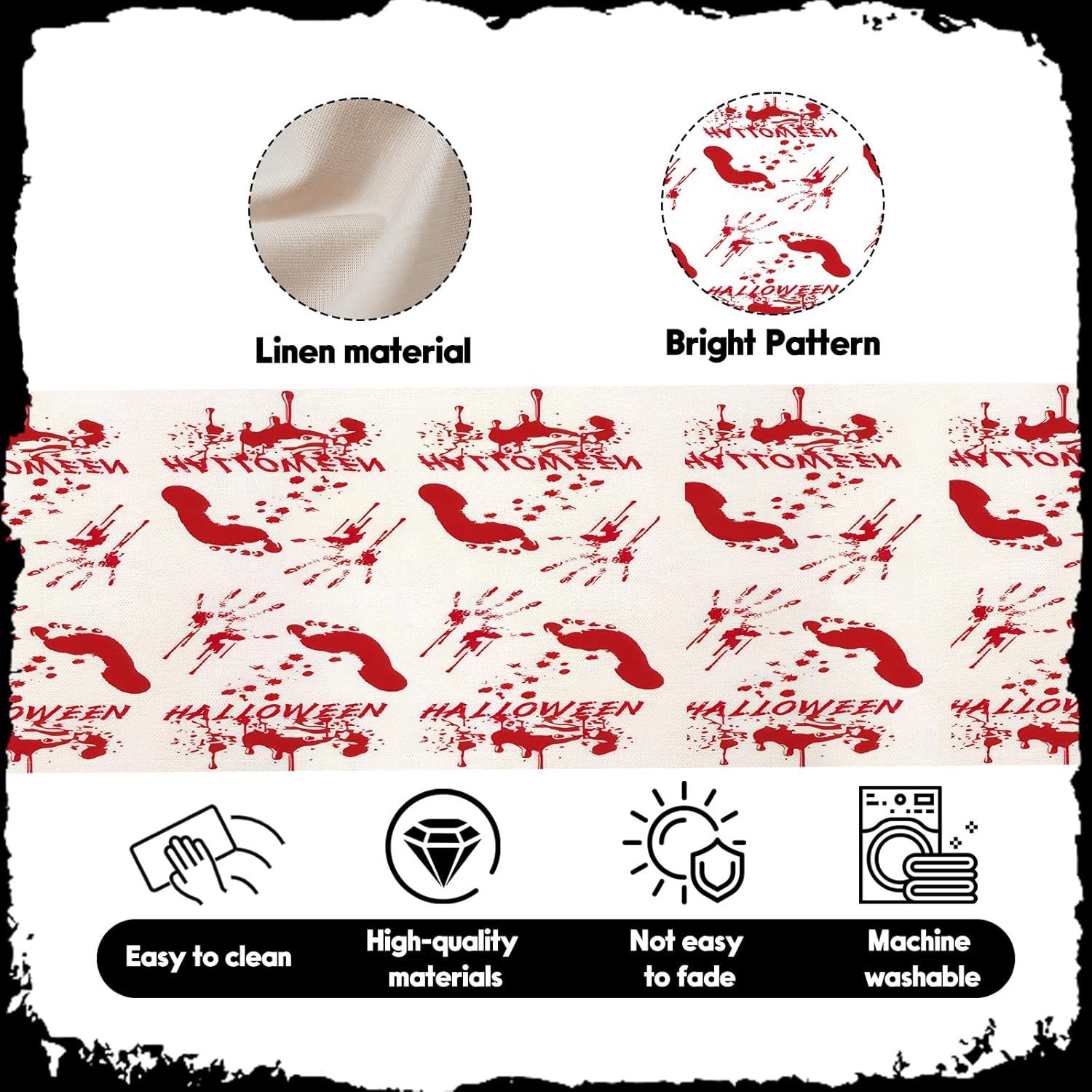 - Package Content: Includes 1 Halloween table runner (13x36 inches) with red bloodstains and footprints printed on it, these classic Halloween elements instantly turn your dining table into the focus of the holiday