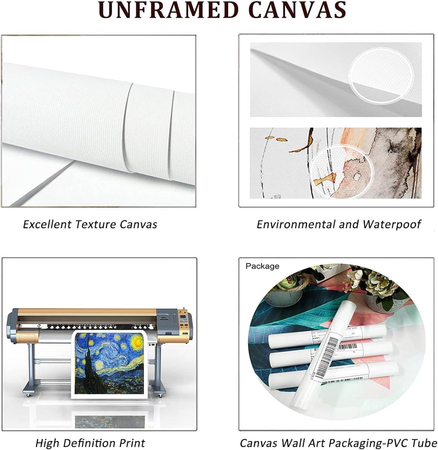- 1.Canvas wall art specifications:Size:16X24inch,frameless,high-definition canvas wall art prints,printing pictures on canvas,using high-quality environmentally friendly ink,not easy to fade. The colors are beautiful and shiny,high-definition Giclee modern canvas print artwork.