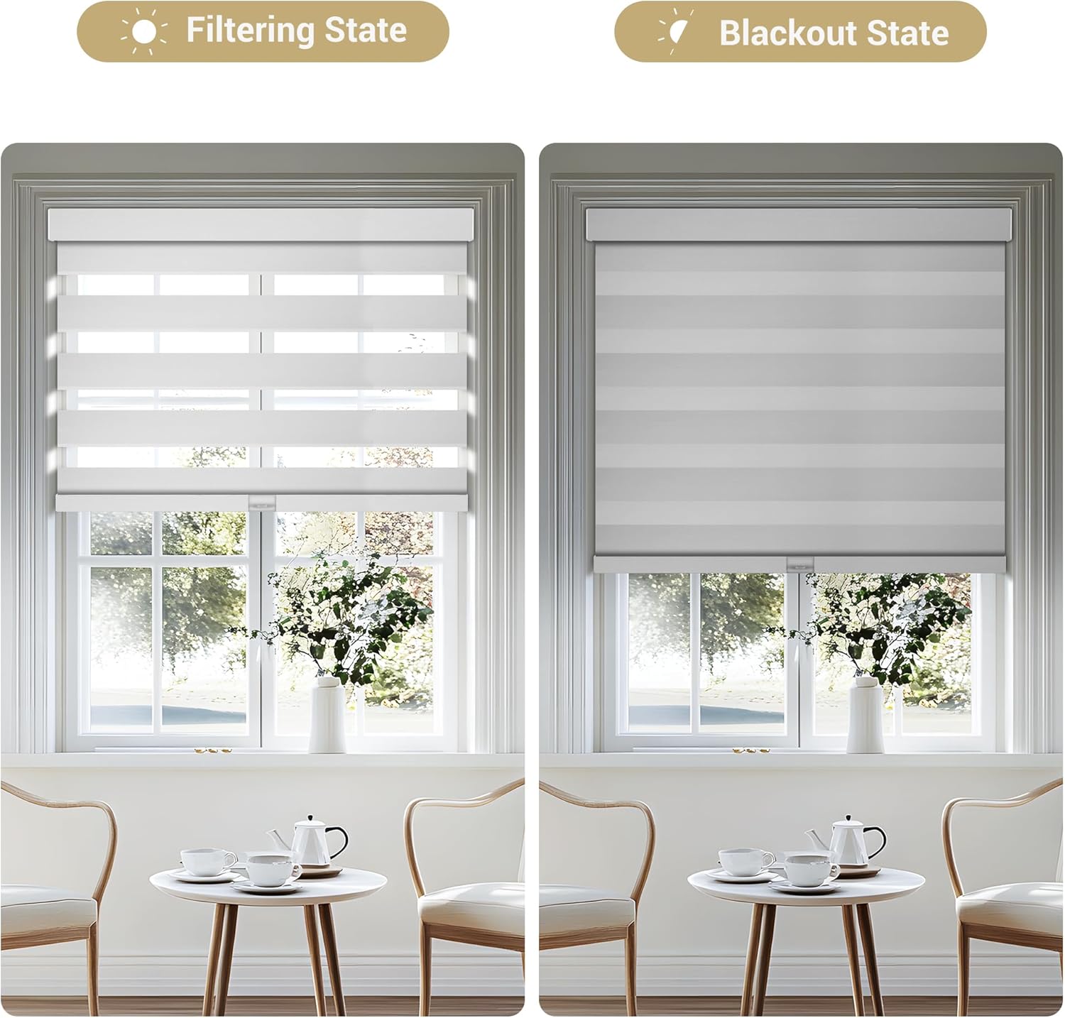 - 【Upgrade High-Quality Accessories】Our blind has been upgraded to have a sturdier bottom rail to prevent the fabric from fraying, which makes the two layers of fabrics more closely fit, maximizing the effect of shading. An anti-collision strip installed under the rail for protecting your window frame. Color-matched valance and the aluminum bottom bar suitable for all situations.