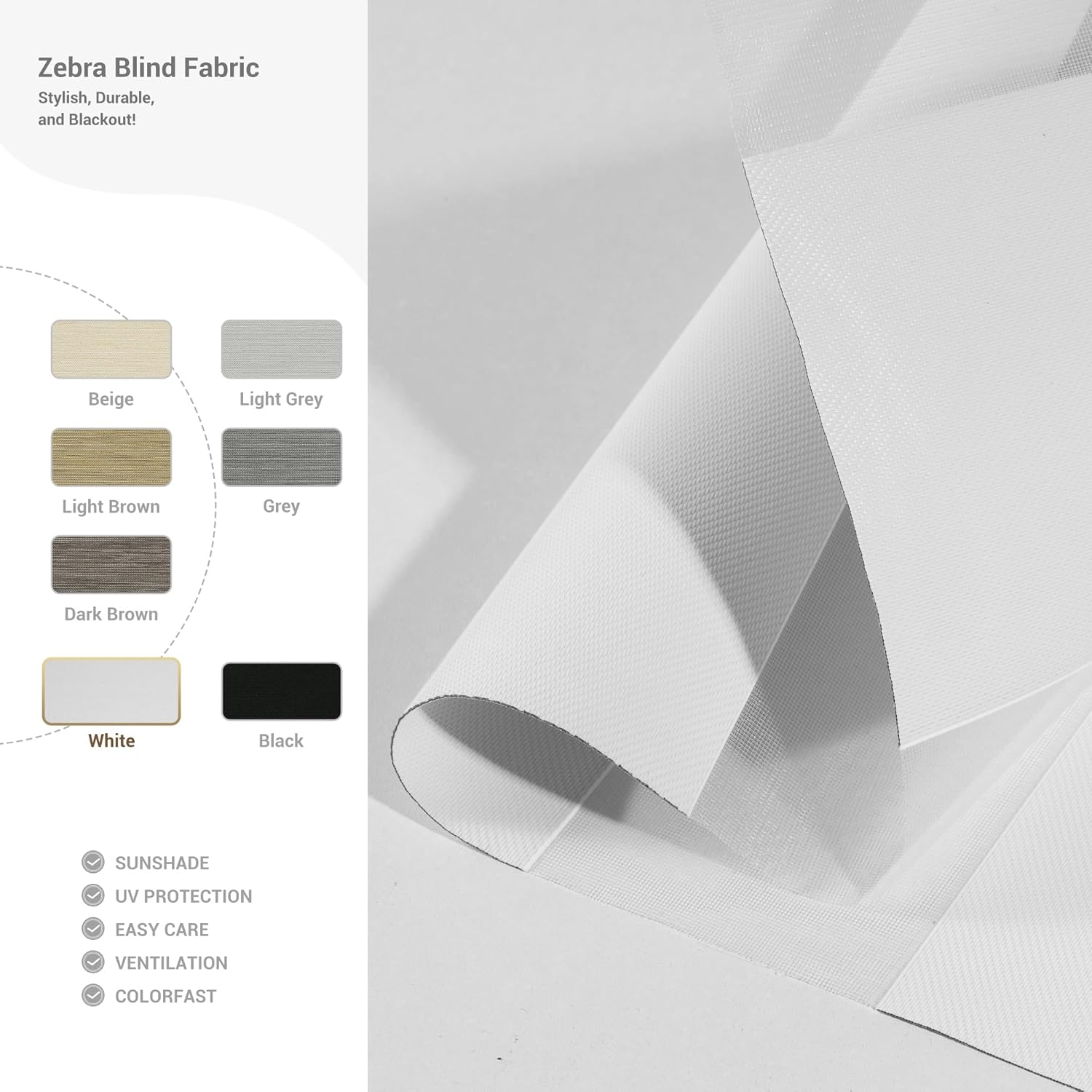 Cordless Zebra Blinds for Windows, Blackout Interior Blinds,Easy to Install,UV Protection,for Offices and Home,Custom Roller Shades, Solid White, 64" W x 36" H