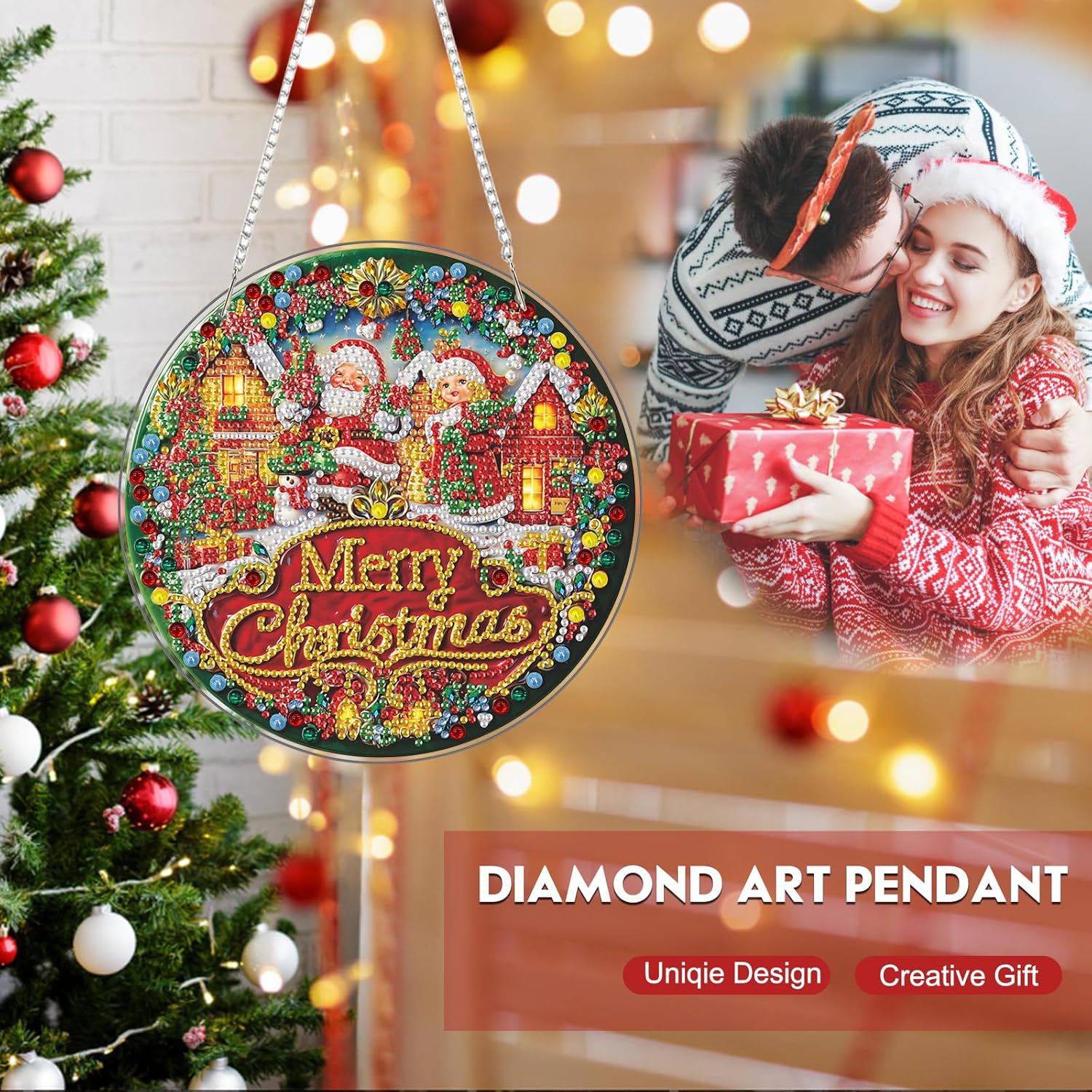 Diamond Art Hanging Kit for Adult, Merry Christmas, DIY Special Shaped Crystal Acrylic Diamond Art Painting Window Pendants, Santa Claus Sign, Diamond Painting Ornament for Home Garden Wall decor