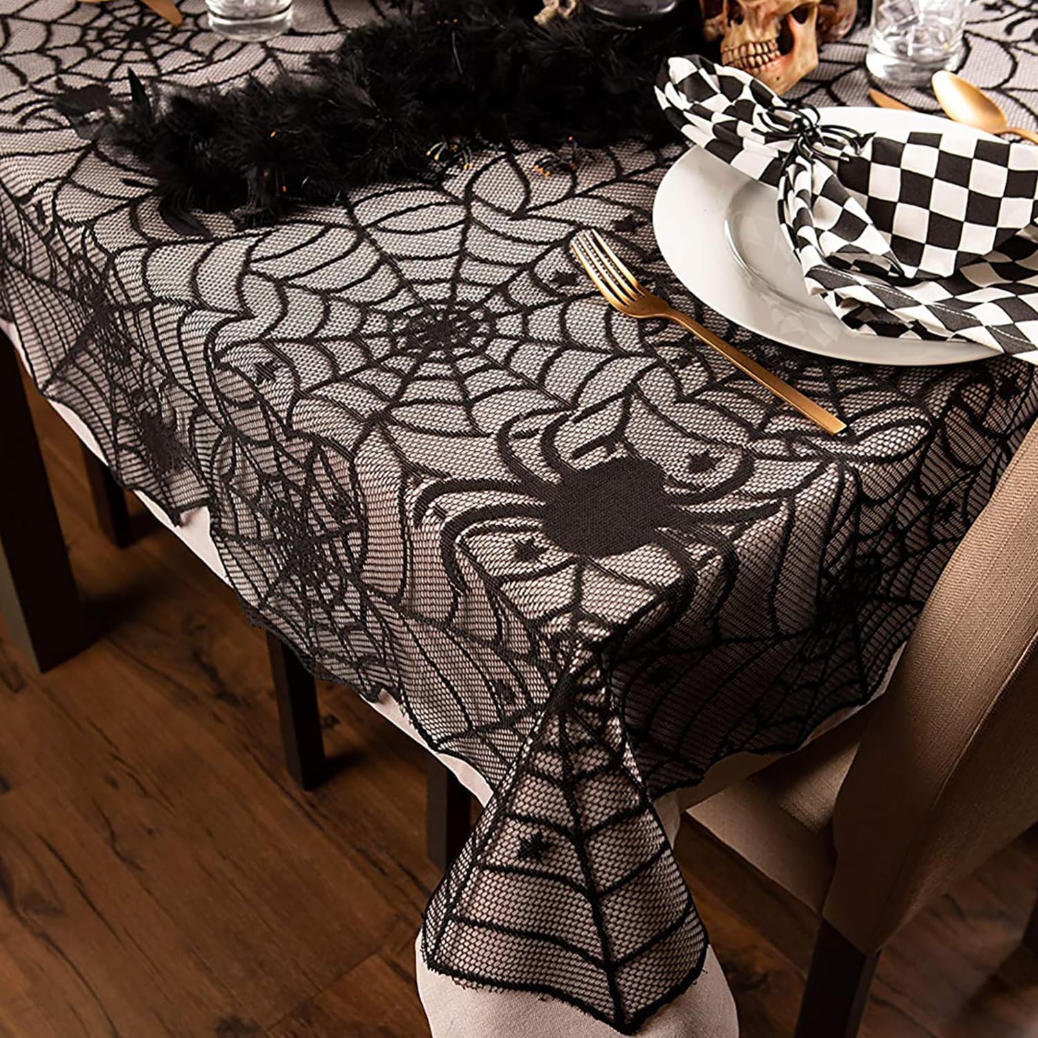 Halloween Tablecloth, Black Spider Web Lace Table Cloth, Gothic Kitchen Decor, Fall-Themed Party Decorations, Spider Web Reusable Home Accent, 54*72 Inches