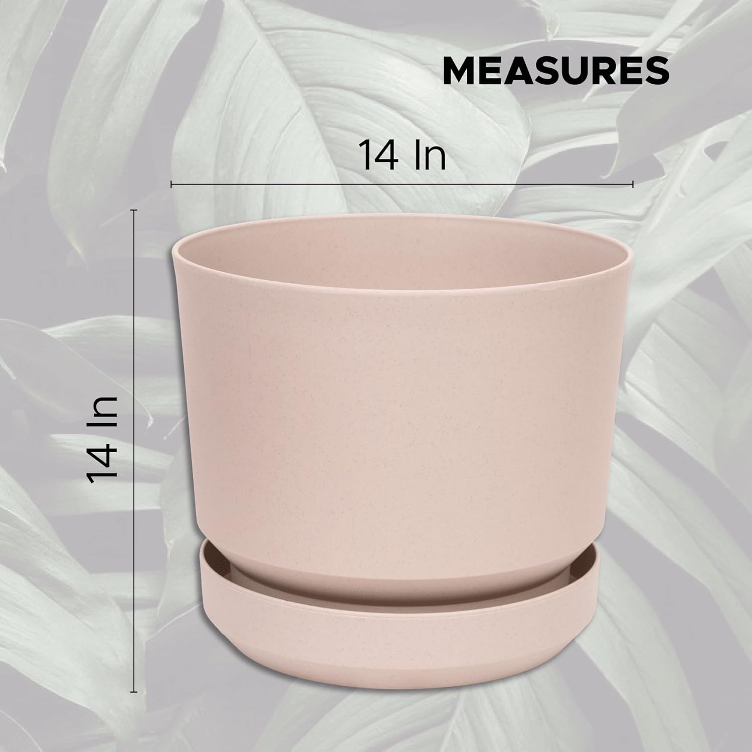 Elly Décor 14 inch Plastic Cylinder Planter Pot with Self-Watering Saucer and Drainage Hole,Lightweight & Extremely Durable, 14"x 14", Ivory
