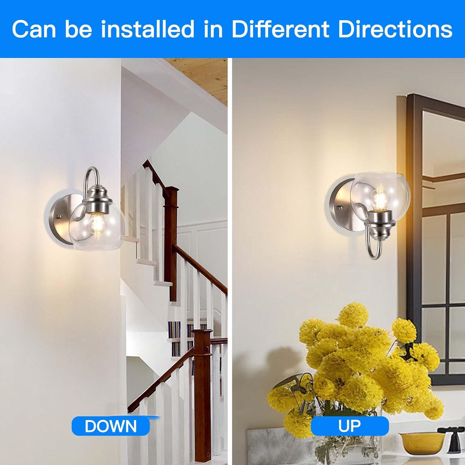 - [Excellent wall lamps]: Two sets of wall lamps are composed of transparent glass lampshades and metal bases. The transparent glass lampshades ensure good light transmittance. The gooseneck design not only restores the classic farmhouse style but also brings a touch of tenderness to your space, making it less rigid. The manufacturing process of brushed nickel metal paint ensures that the wall lamps will not oxidize or fade.
