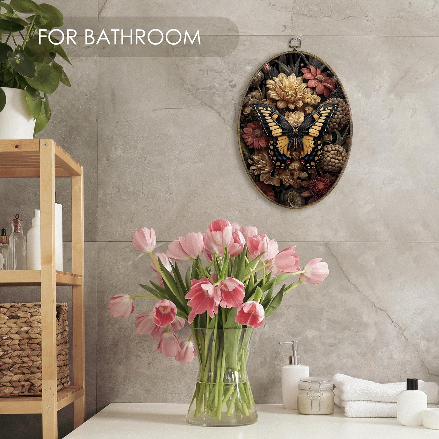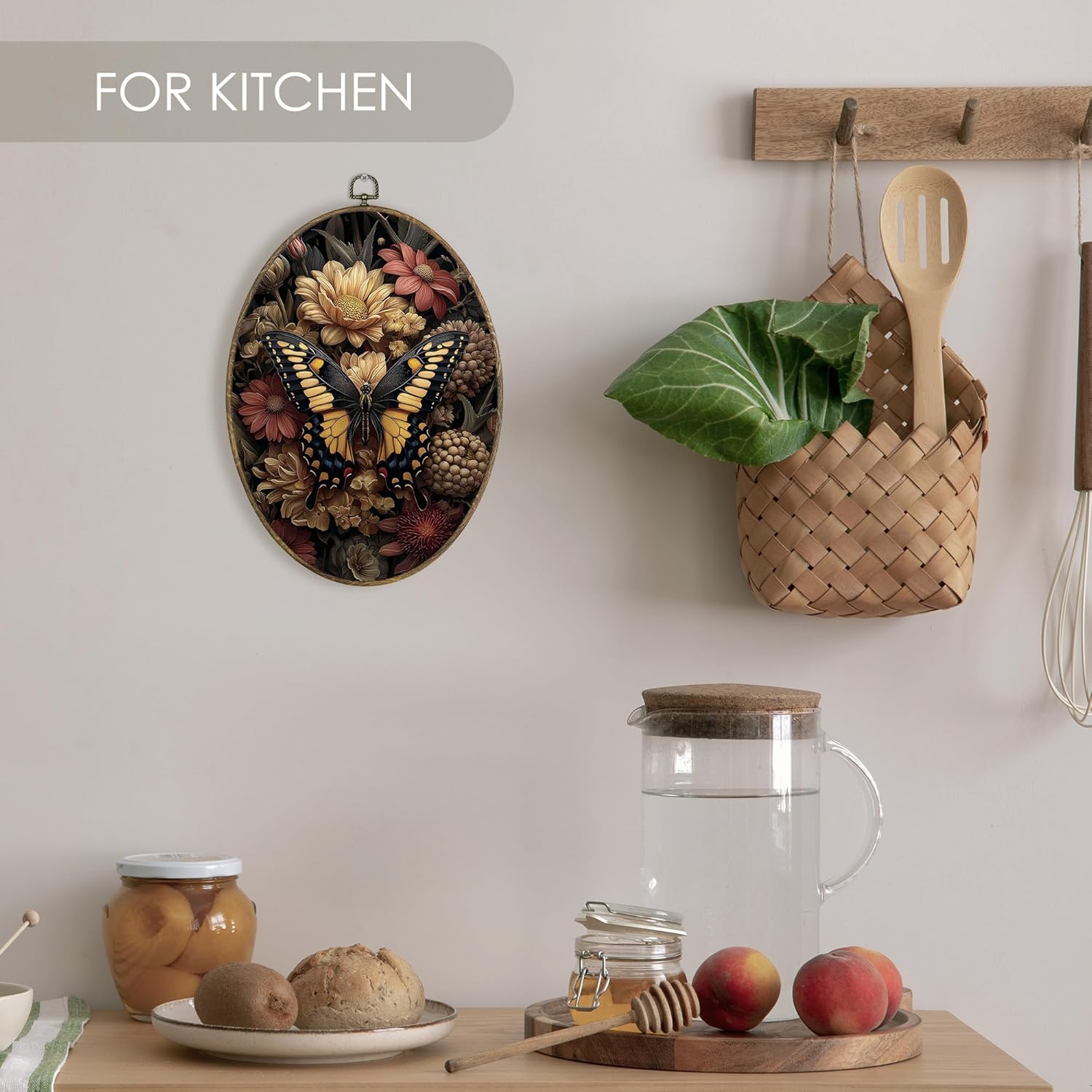 Fewgb Vintage Dark Moody Butterfly Floral Oval Wall Art Decor Framed, Farmhouse Dark Cottagecore Academia Canvas Wall Art Prints Picture, Botanical Hanging Room Decor Artwork for Kitchen Bathroom 9x12