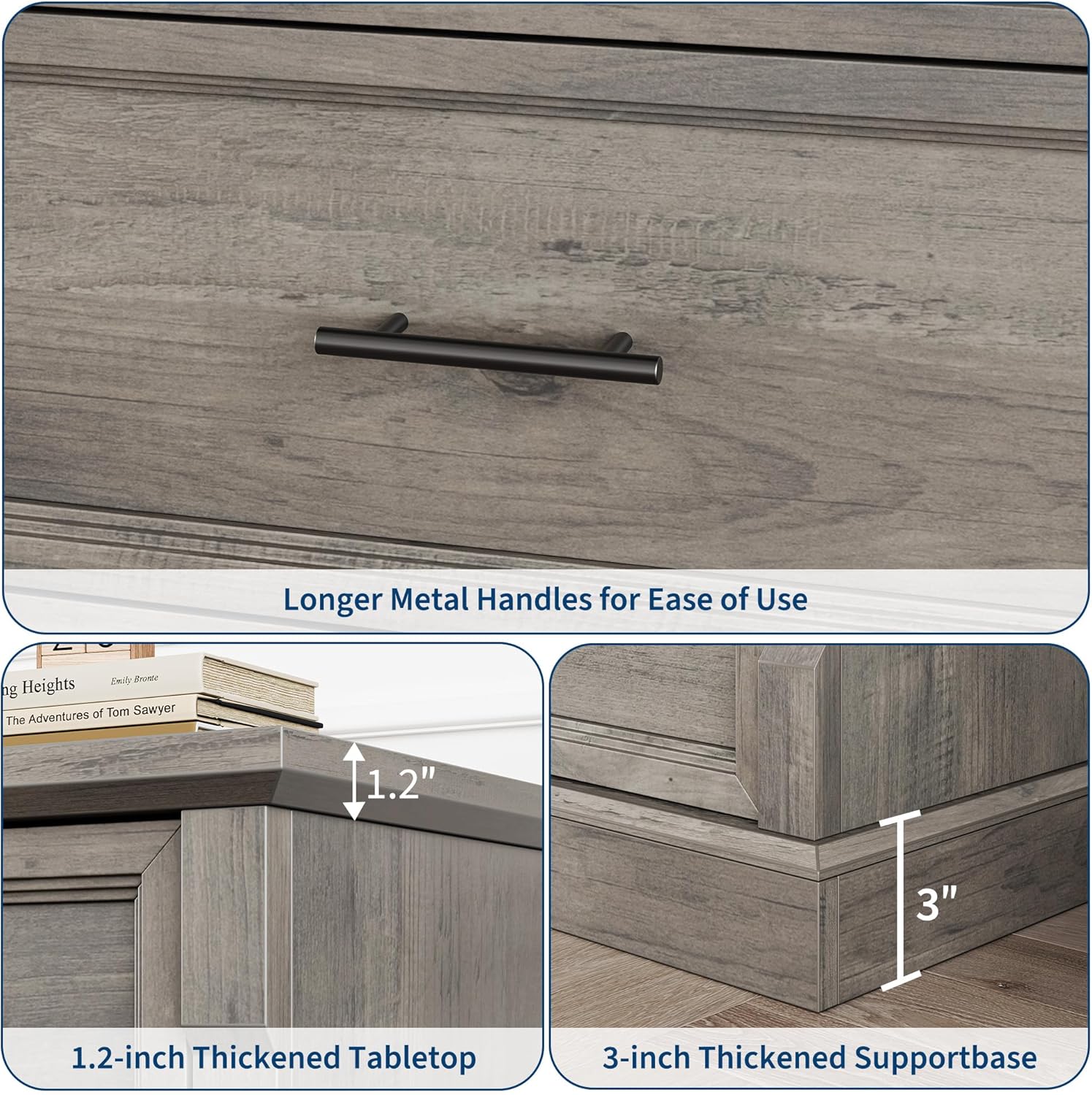 - Farmhouse Charm: This durable bedroom dresser features scratch-resistant finishes, a reinforced 1.2" top, and a sturdy base. Uniquely designed drawer fronts drawers and vintage metal handles add timeless style that complements any decor