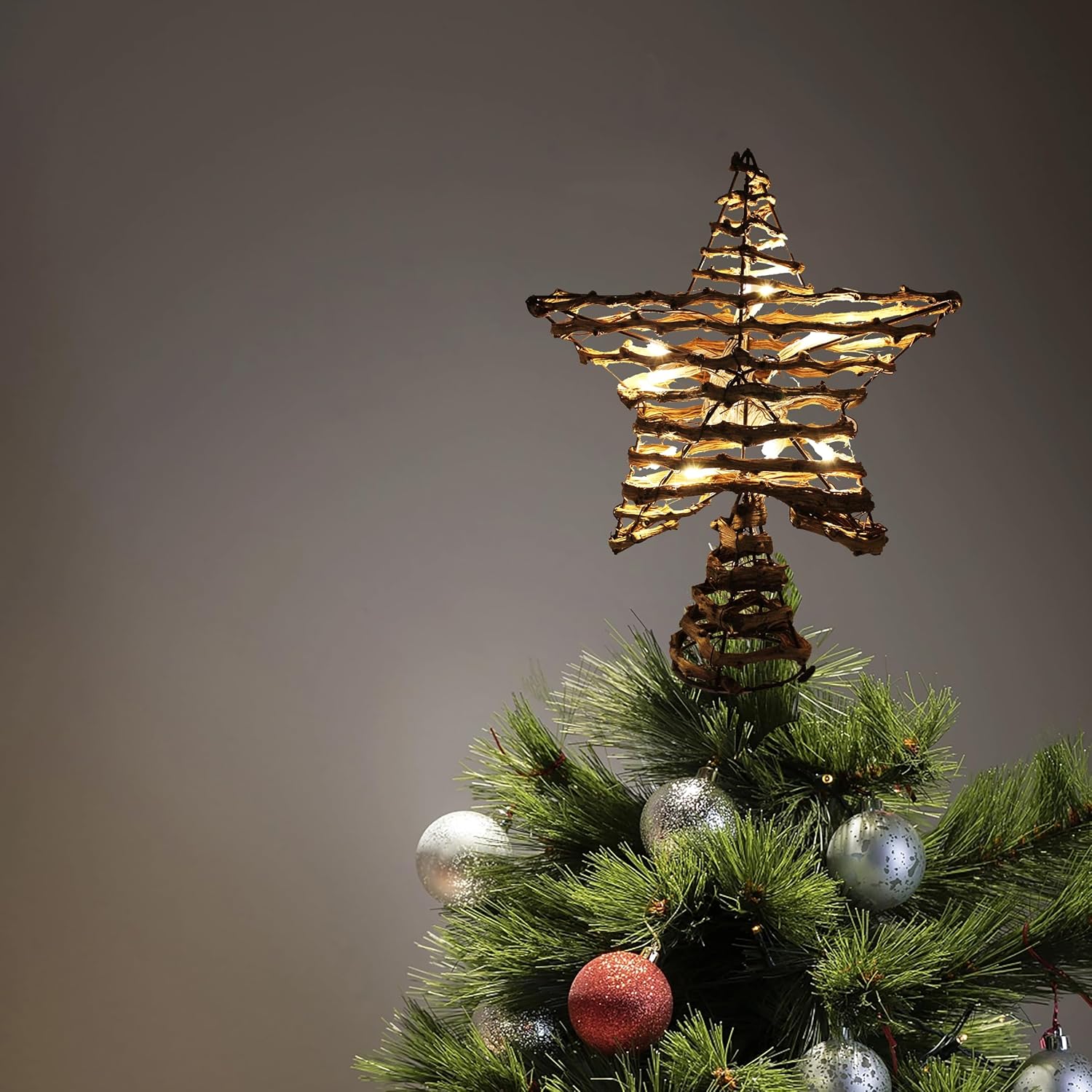 CVHOMEDECO. Rustic Rattan Christmas Tree Star Topper with LED Lights, Farmhouse Christmas Tree Toppers Decoration, 8 x 10 Inch
