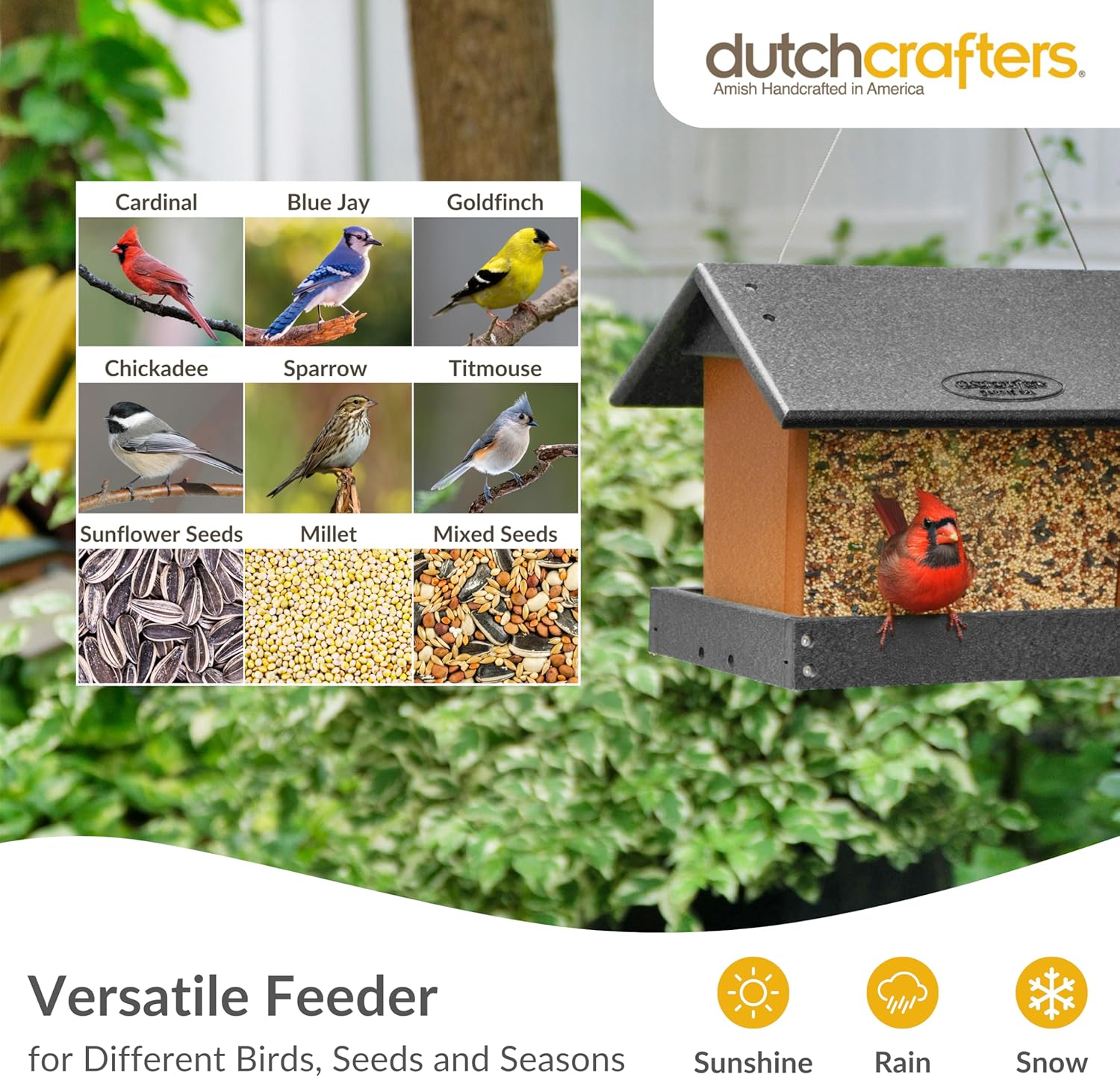 Poly Hanging Hopper Bird Feeder, Large Hanging Bird Feeder for Outside, Outdoors - Amish American Made (Black & Cedar)