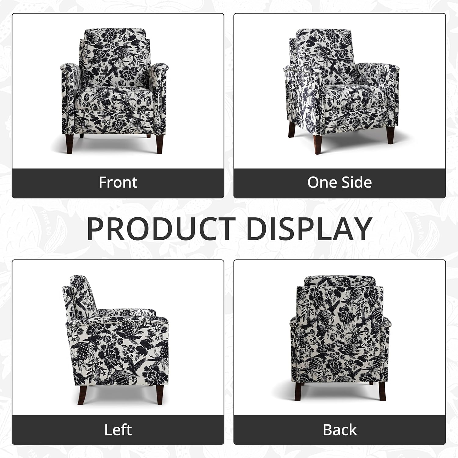 Floral Accent Chair, High Back Upholstered Armchair with Solid Wooden Legs, Padded Armrest and Removable Comfortable Cushioned Seat Single Sofa for Living Room, Bedroom, Black