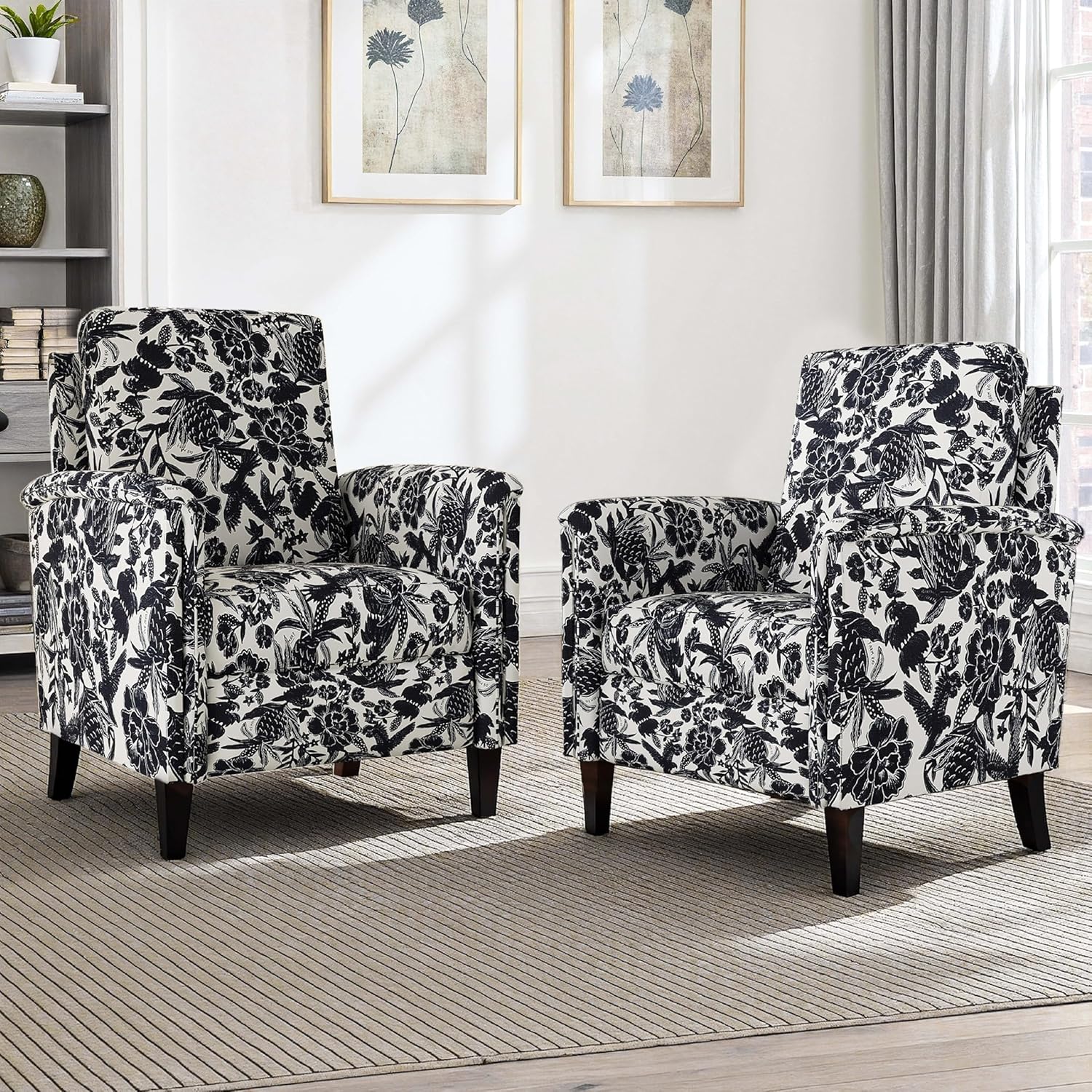 Floral Accent Chair Set of 2, High Back Upholstered Armchair with Solid Wooden Legs, Padded Armrest and Removable Comfortable Cushioned Seat Single Sofa for Living Room, Bedroom, Black